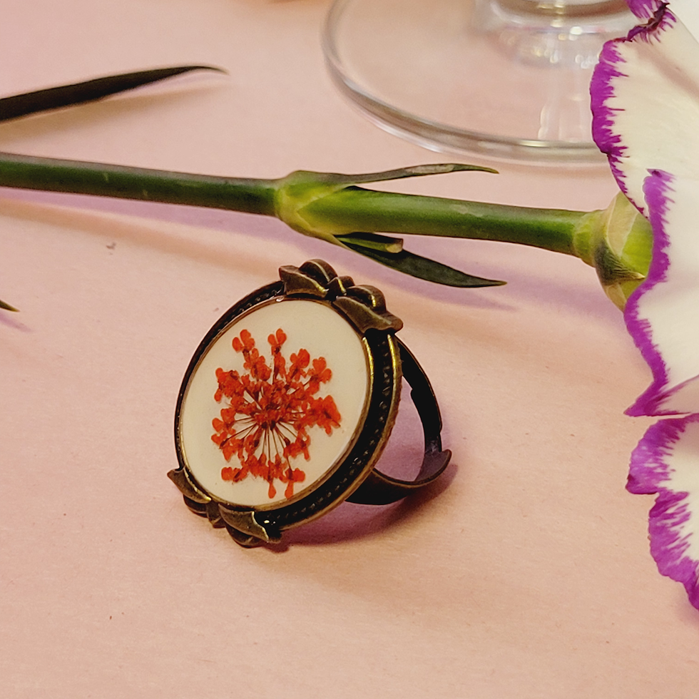 Pink Queen Anne's Lace Antique Floral Finger Ring | Delicate Resin Jewelry